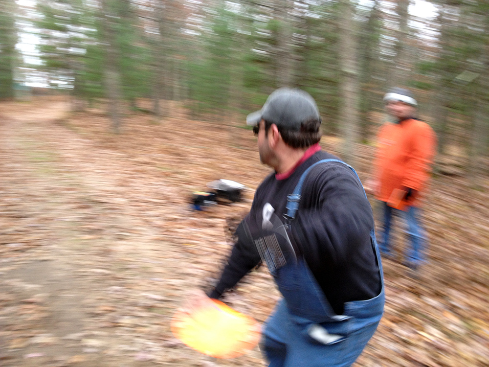 On the first round of the ANW 2015 Disc Golf tourney Leo made a tee shot on hole #6 that went… wrong. I think he was throwing with some underhand inside goofy footed nonsense motion.