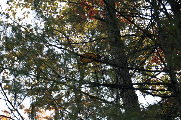 Anyway, we couldn’t find his disc anywhere (SHOT!). The next morning while walking the course to take pictures of the holes (see the newly documented course here) Dag and I found the disc high in a tree.
