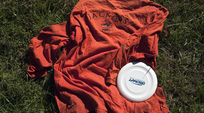 The Jackass shirt serves as reminder for the wearer of their futility in the last round of disc golf and to play better in the current round of disc golf play.