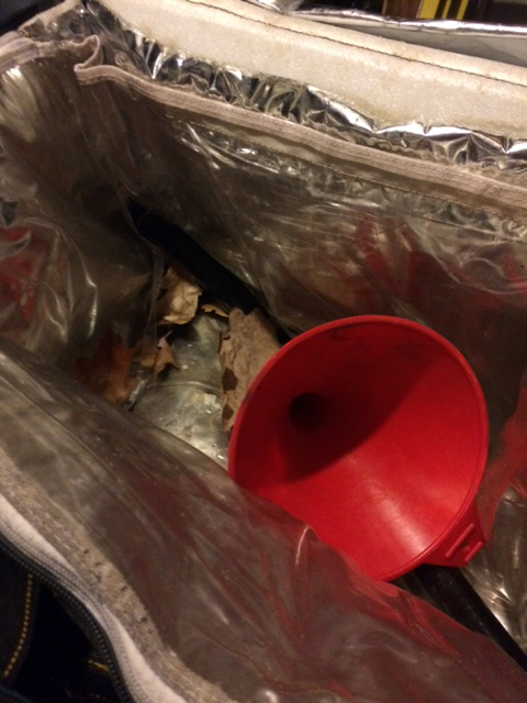 An empty bag with the beer bong awaiting the yearly ritual. Sad to see it empty.