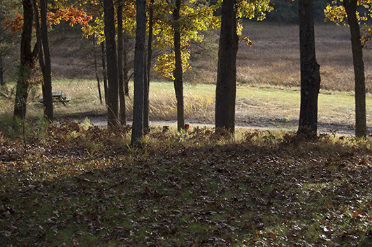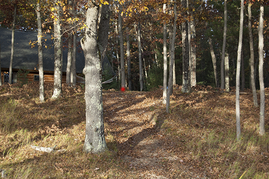 Comments about Hole #15 – This hole comes after a quick break in the game to refill the cooler and maybe grab a bite. It can quite treacherous as the pin is behind the stump where red marker is in the picture. Add that to the many trees hanging around and this tee off can be anger inducing. Did we mention that this is par 1?